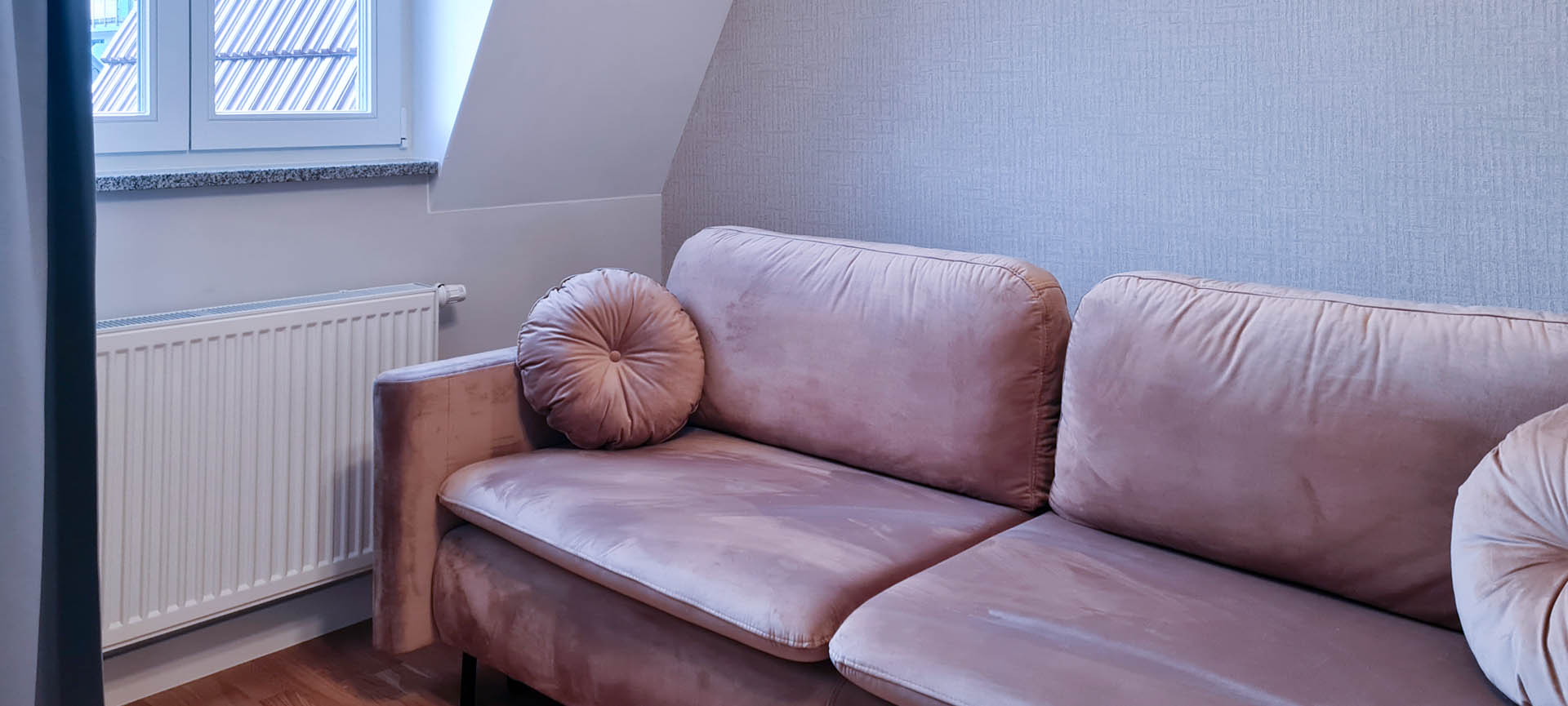 v obývacím pokoji rozkládací dvoupostelovoá pohovka