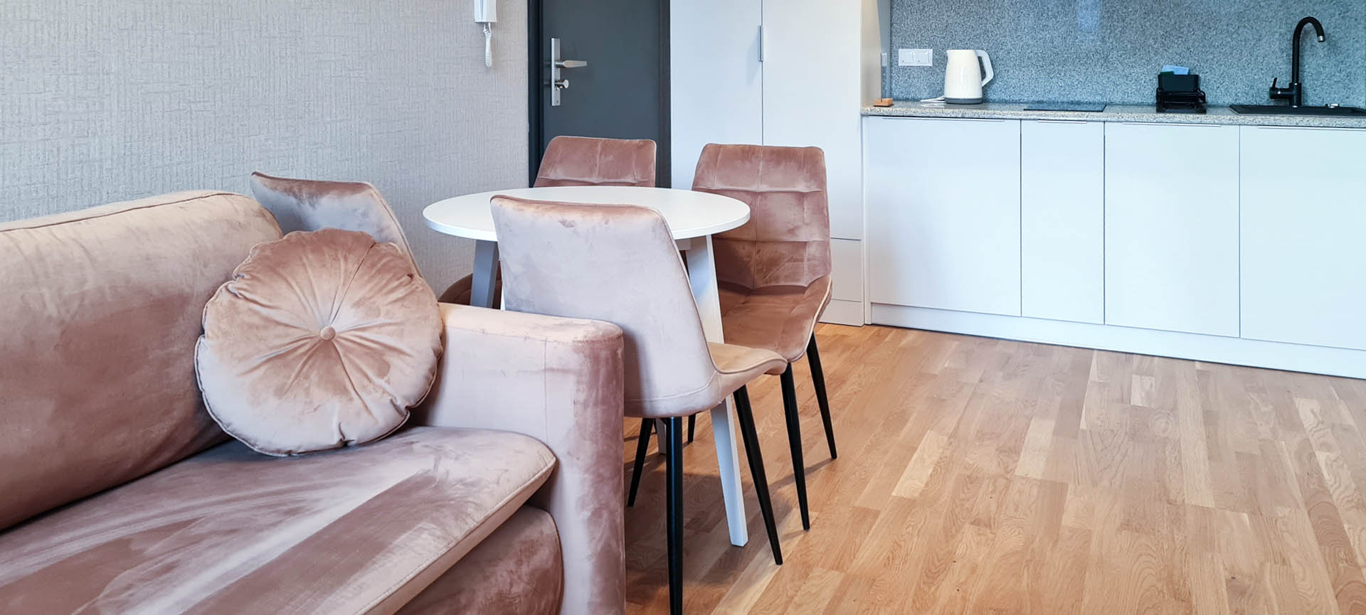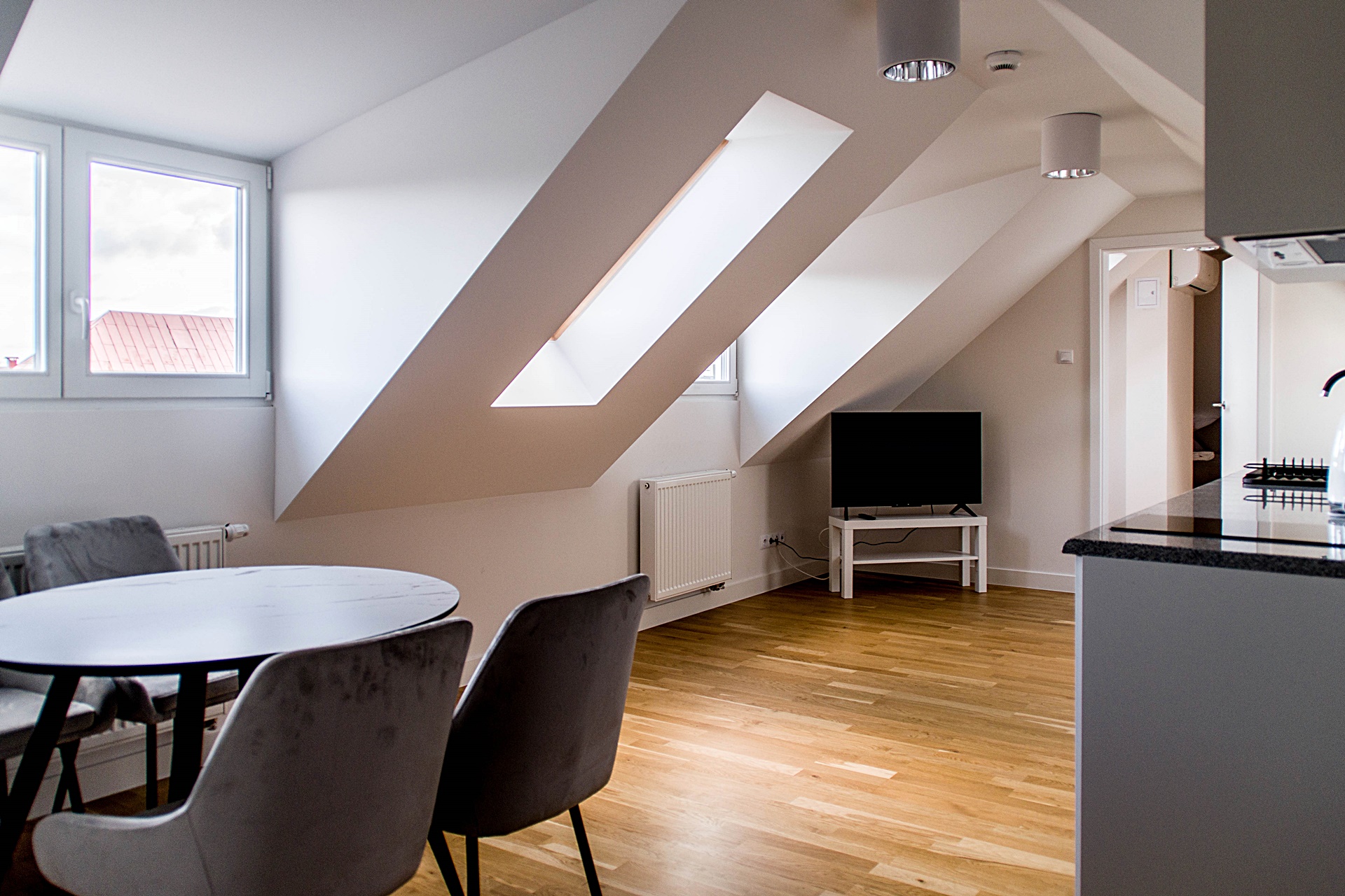 • w pokoju dziennym rozkładana dwuosobowa sofa